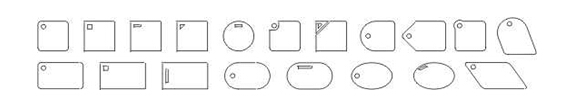 薄膜開關(guān)按鍵的各種形狀:鍵體外形與大小的設(shè)計(jì),應(yīng)從整個(gè)面板的大小及按鍵數(shù)量的多少來考慮。按鍵太小,操作比較費(fèi)力;按鍵太大,則影響美觀,且不宜按準(zhǔn)有效操作區(qū)域。另外,如果按鍵凸起,應(yīng)選擇帶圓角的矩形、圓形、橢圓、長(zhǎng)圓等外形比較圓滑的形狀;按鍵不凸起時(shí),則可選擇任意形狀,以略大于后部電路觸點(diǎn)為好。在鍵體上設(shè)置指示窗,一般情況下,以左上角為好。指示窗的形狀雖可自由設(shè)計(jì),但應(yīng)注意盡量與鍵體的外形輪廓相適應(yīng),譬如,帶圓角的鍵體,宜采用圓形指示窗,方角鍵體宜采用方形或長(zhǎng)方形指示窗,以增進(jìn)外觀的協(xié)調(diào)。在同一面板上各單元內(nèi)的指示窗位置及形狀應(yīng)趨于一致。常見鍵體外形與指示窗位置、形狀見下圖